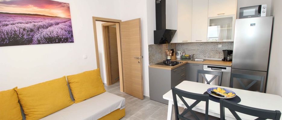 - Veliki dnevni boravak s kuhinjom, spavaća soba, kupaona s wc-om veličine 45 m2
